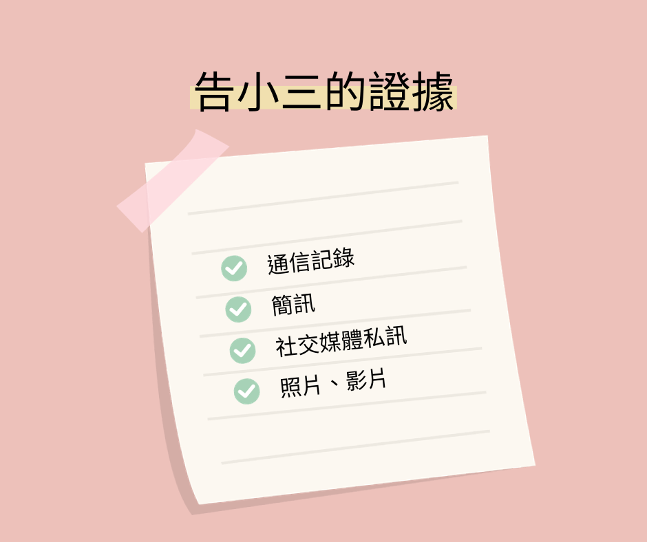 告小三的證據: 在提告小三之前,我們需要確保擁有充分的證據。這可能包括通信記錄,例如簡訊、社交媒體私訊等,以顯示小三與前任的不當聯繫。此外,照片、視頻等可以作為證據,強化我們的告訴。蒐集足夠的具體證據將有助於案件的成功。