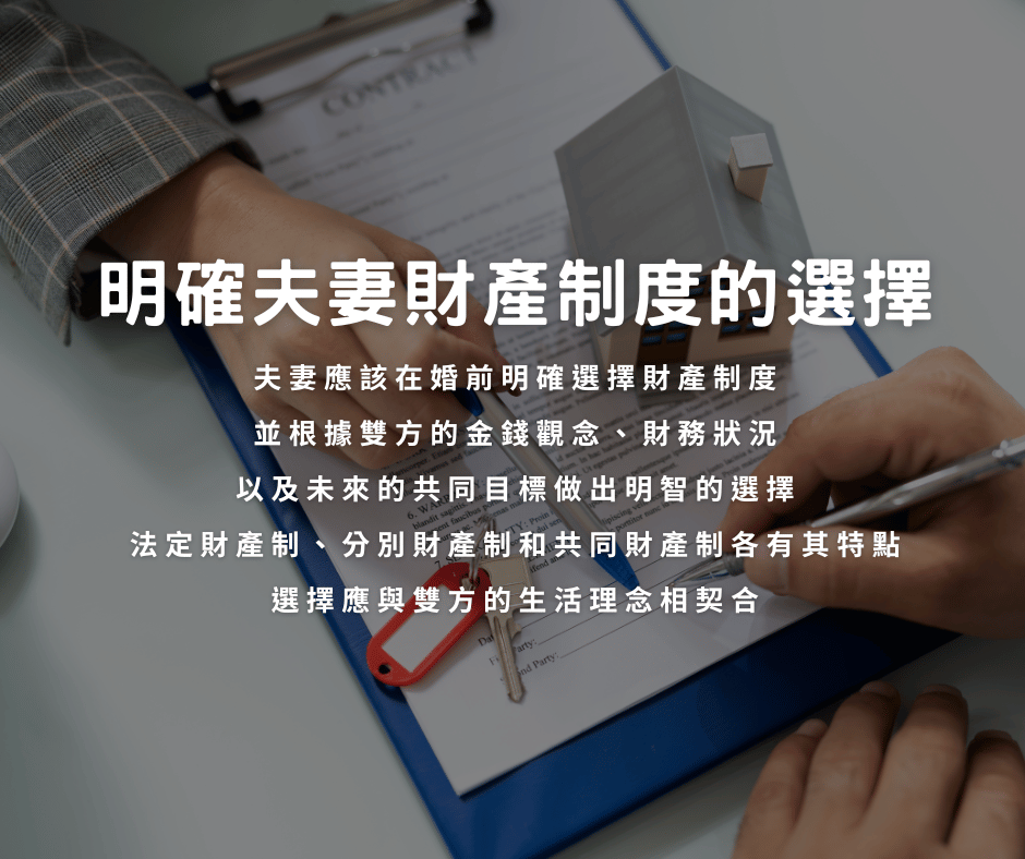 在離婚財產分配中,夫妻財產制度的選擇是影響分配結果的首要因素。夫妻應該在婚前明確選擇財產制度,並根據雙方的金錢觀念、財務狀況以及未來的共同目標做出明智的選擇。法定財產制、分別財產制和共同財產制各有其特點,選擇應與雙方的生活理念相契合。